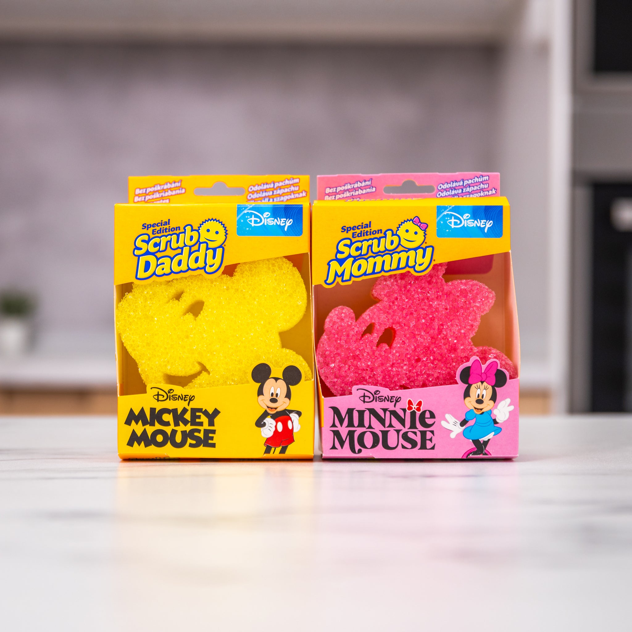 Udělejte si domácí práce zábavnější s limitovanou edicí kolekce houbiček Disney Scrub Daddy! Balení obsahuje nejoblíbenější a nejznámější postavičky od Disneyho: Mickey Mouse a Minnie Mouse.