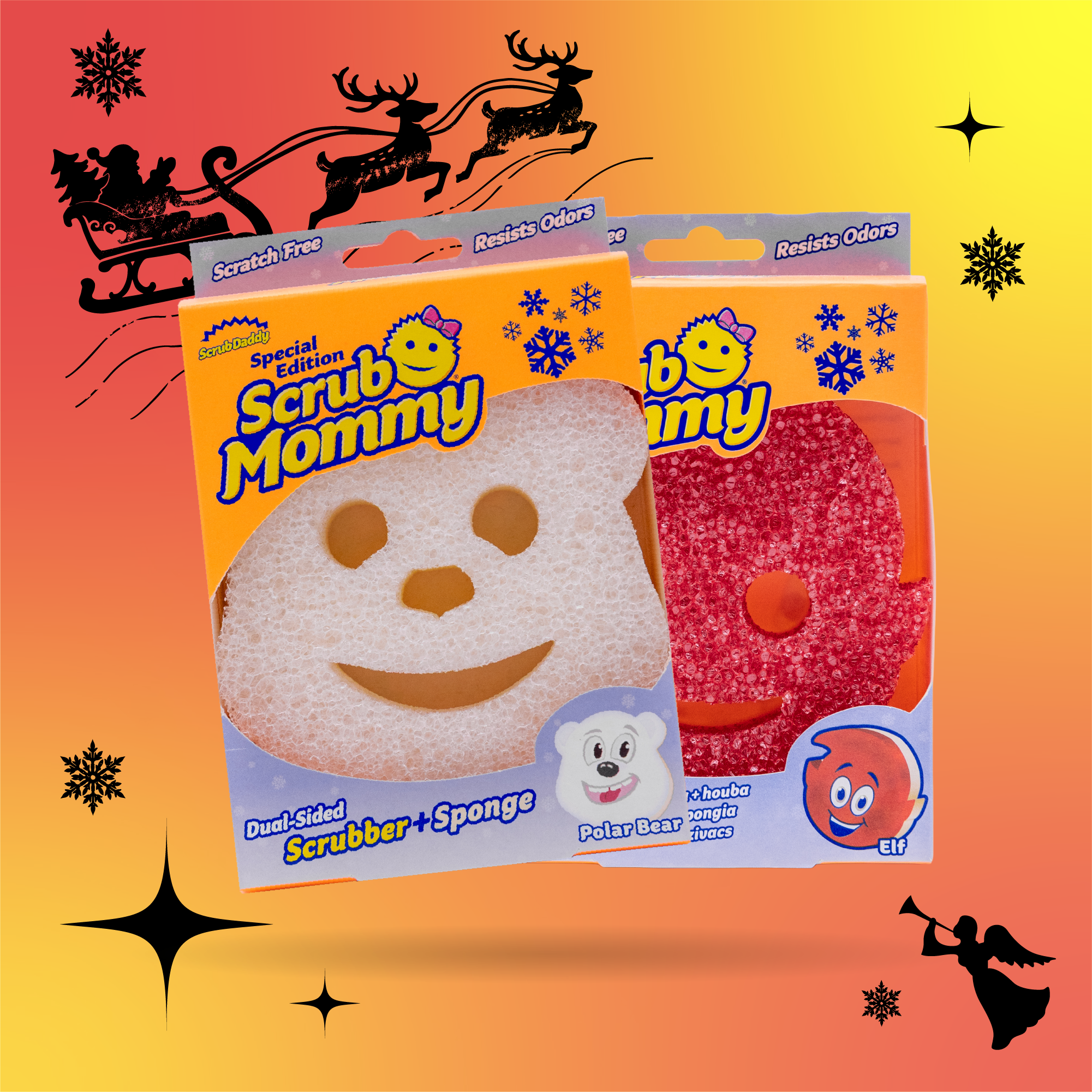 I Santa ví, že existují lepší dárky, a proto letos přináší jednoho ze svých skřítků a ledního medvěda ve formě houbičky. Tyto dvě zábavné, sváteční houbičky vypadají 6. prosince perfektně v punčochách a v kuchyni fungují ještě lépe!
