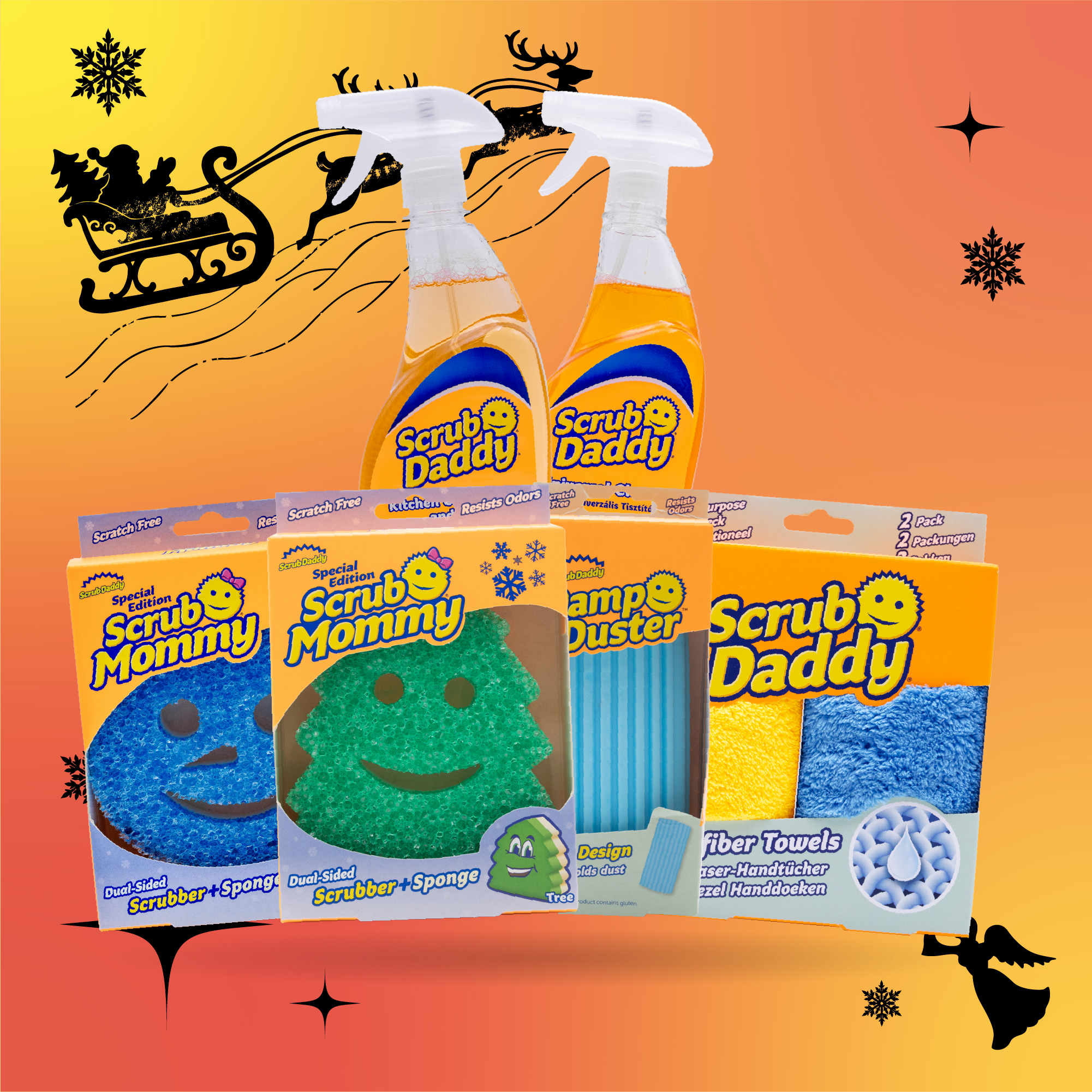 Produkty Scrub Daddy jsou plně připraveny na sváteční úklid ve vaší domácnosti. Tato sada obsahuje všechny praktické nástroje, které potřebujete, aby všechny povrchy zazářily v rekordním čase – takže vaše vánoční přípravy budou rychlé a snadné.