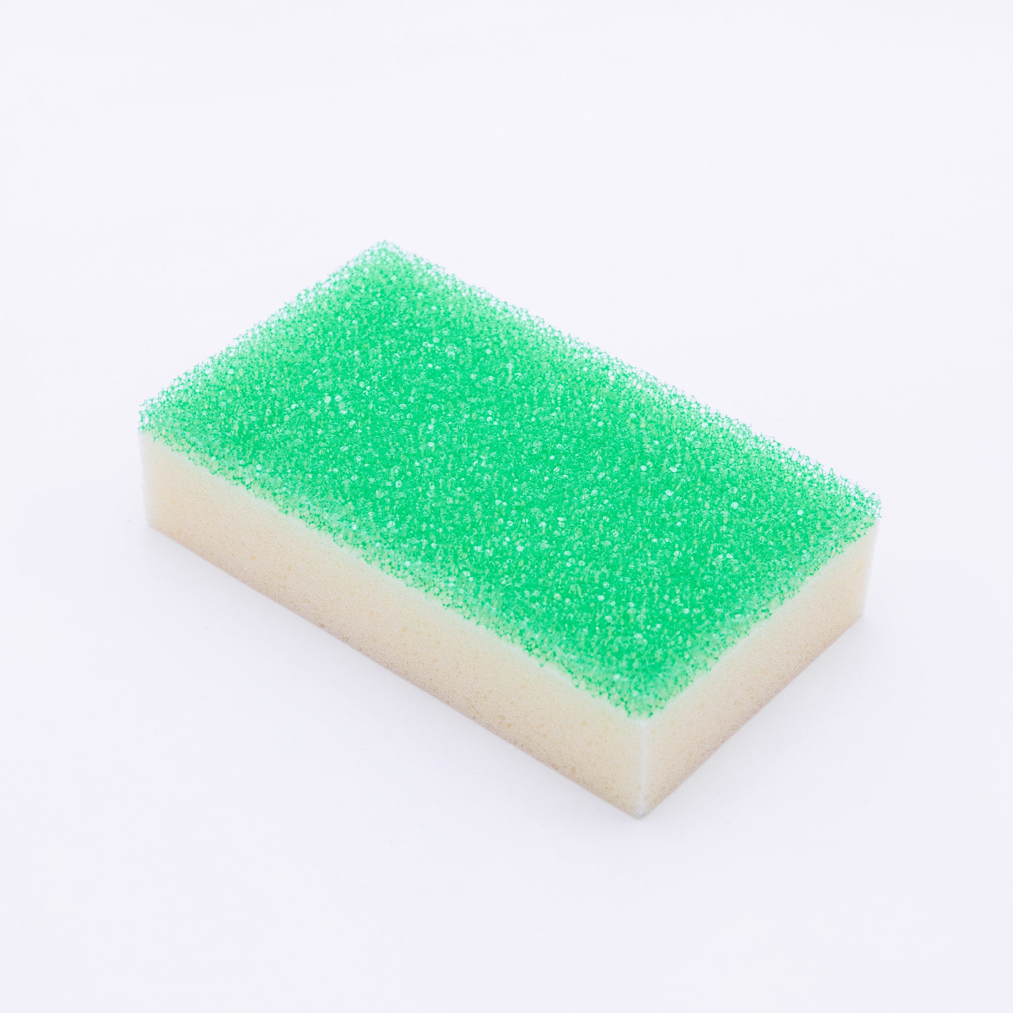 Strana XL Sponge Daddy FlexTexture je citlivá na teplo: měkká v teplé vodě a tvrdá ve studené vodě. Nezávisle testováno a prokázáno, že čistí bez poškrábání na více než 20 různých površích. Vše, co potřebujete k opláchnutí, je voda.